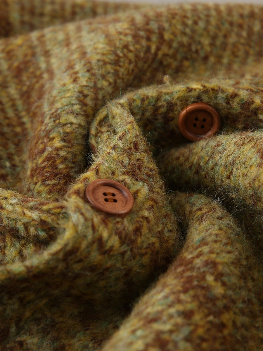 Mixed color sweater jacket for women in autumn and winter loose and lazy style casual and slimming V-neck knitted cardigan top
