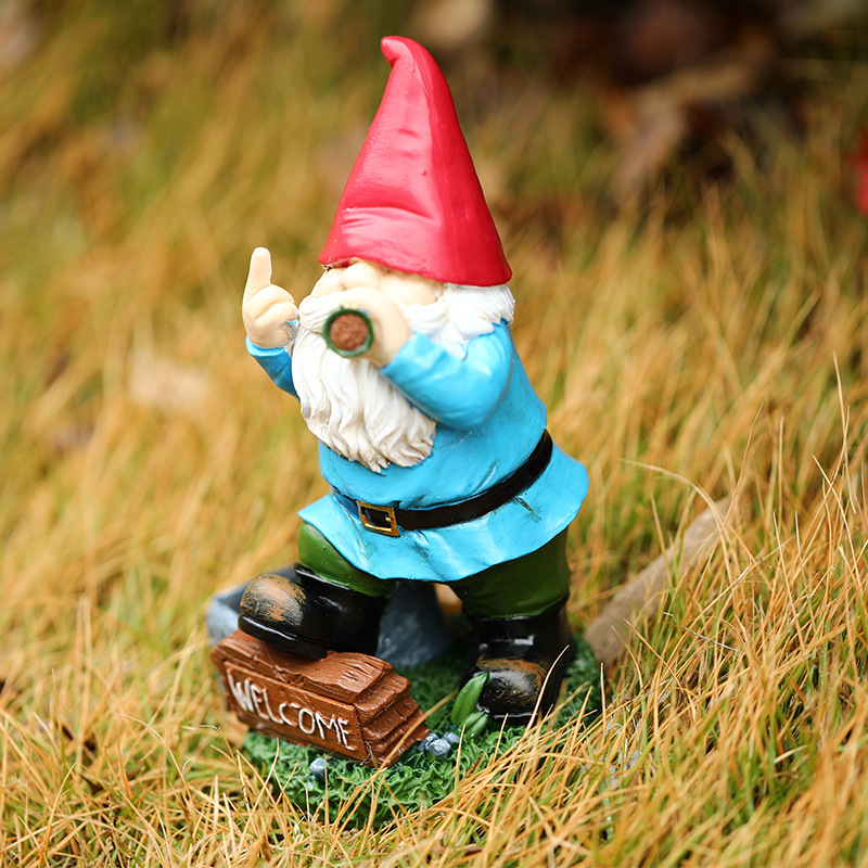 Outdoor courtyard solar smoking vertical middle finger elderly resin decoration